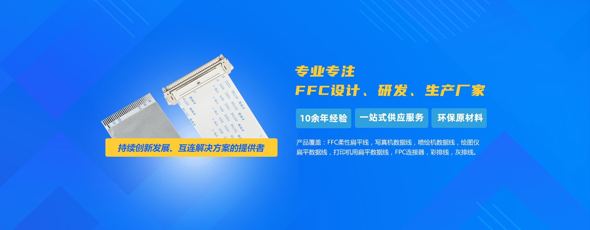 柔性扁平電纜 Flexible Flat Cable(FFC)可以任意選擇導線數(shù)目及間距,使聯(lián)線更方便,大大減少電子產(chǎn)品的體積,減少生產(chǎn)成本,提高